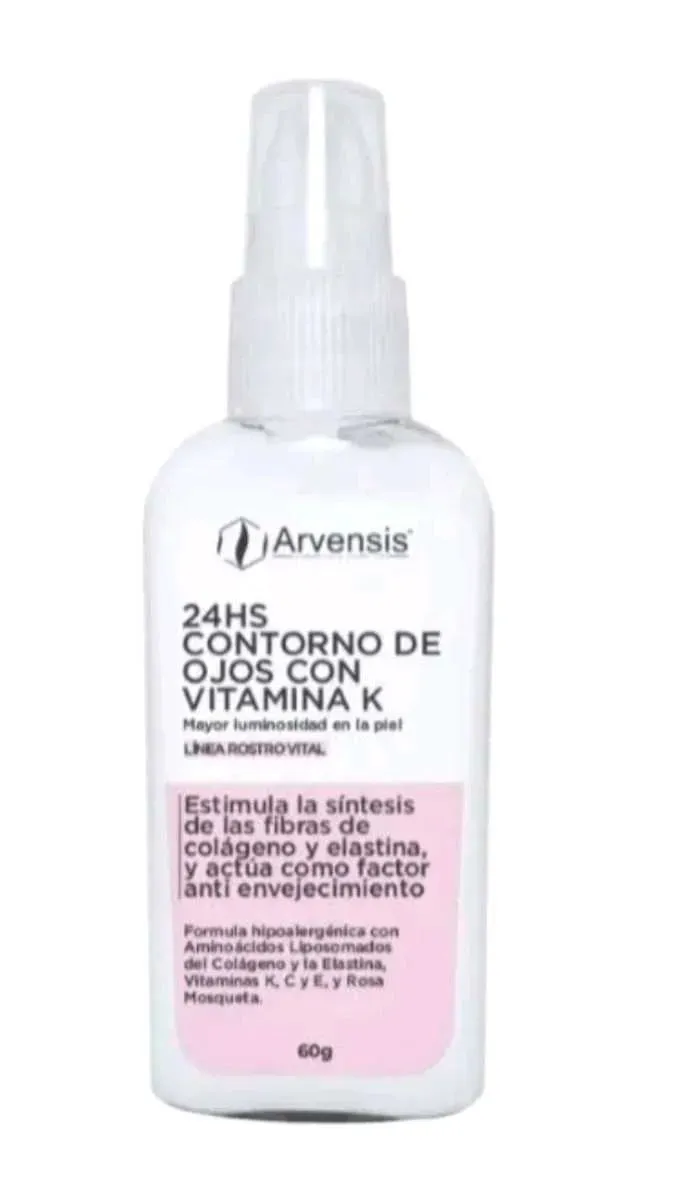 Crema contorno de ojos con Vitamina K ( 200mg%) ., ácido hialurónico colageno, elastina y factor de protección solar 15.